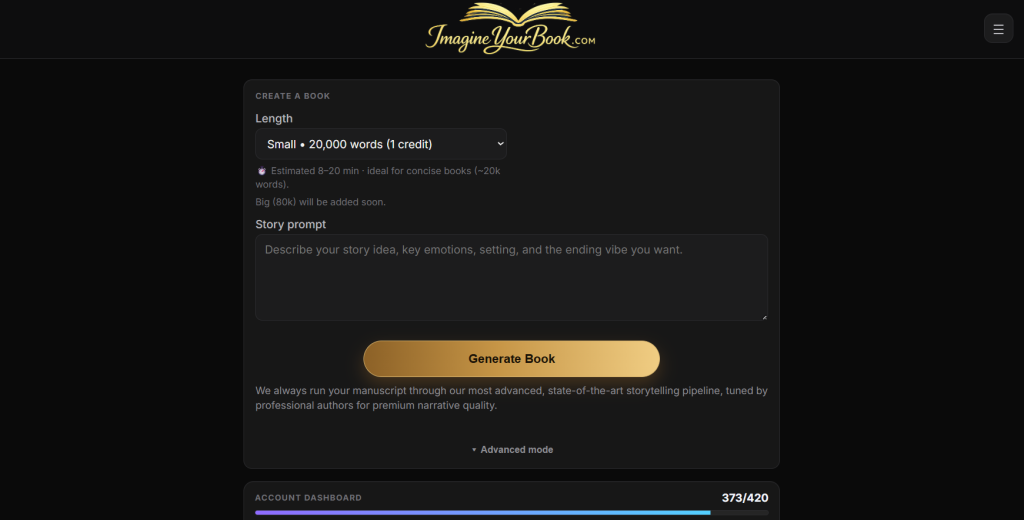 If quality is your main priority, ImagineYourBook.com is the strongest option on this list. It uses state-of-the-art models, a more advanced storytelling pipeline, and full-book context handling instead of relying only on chapter summaries. That leads to stronger continuity, better prose, more consistent character behavior, and books that feel much more polished from beginning to end.