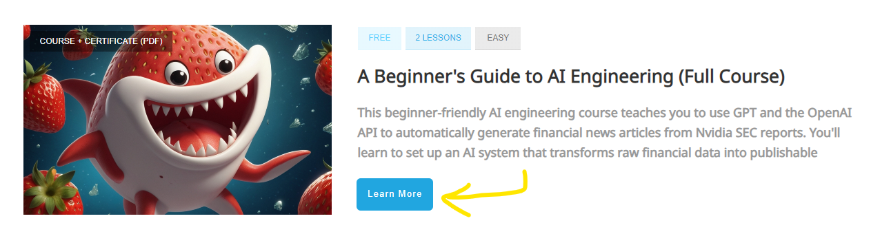 If you want to become an AI engineer, access our free and easy 1h beginner course - and download your individual course completion certificate for free: