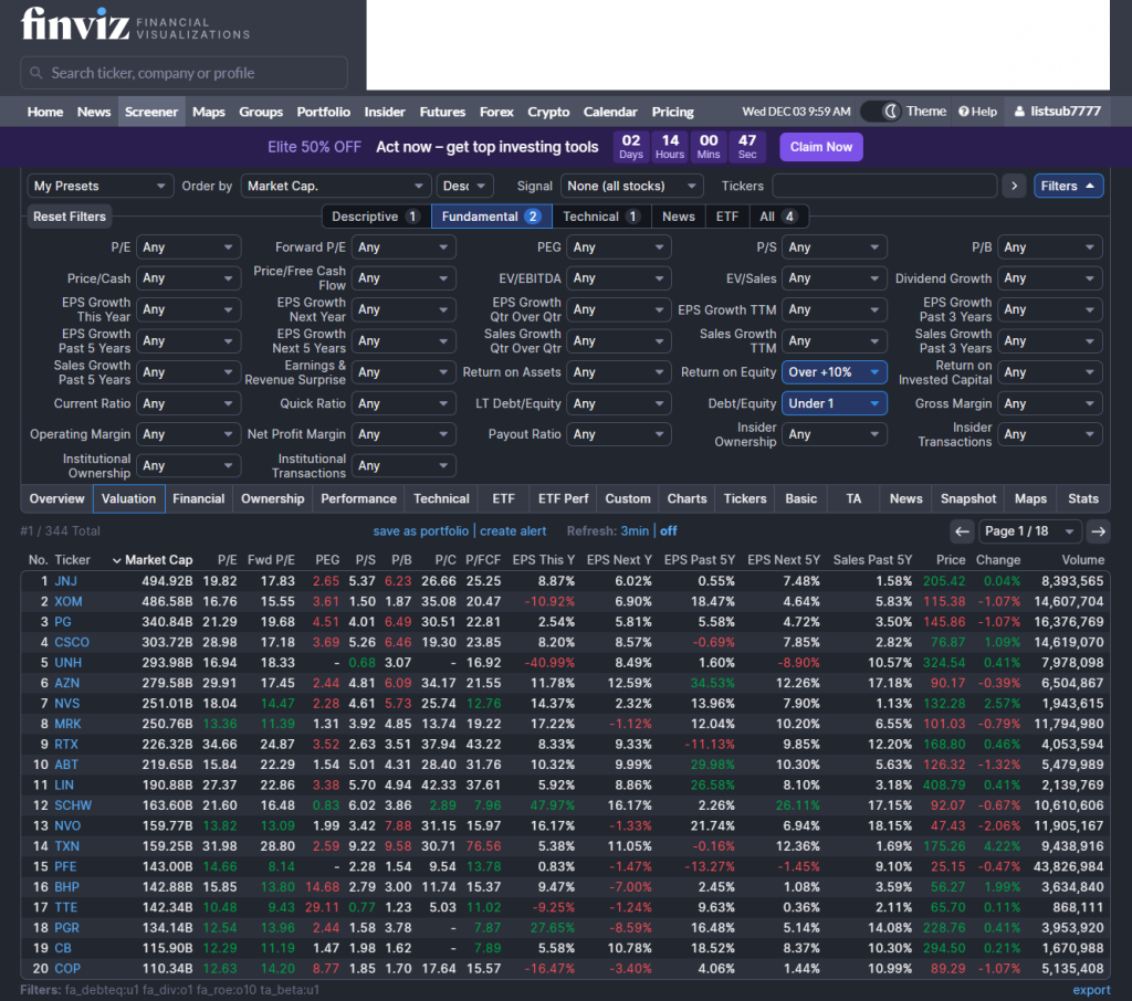 Filter 4 – Return on equity (ROE) > 10%